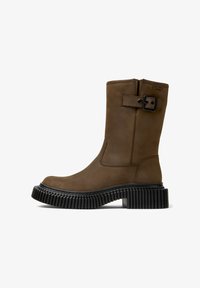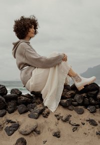 Взглянем на детали, одной из которых является массивный каблук: он должен быть высоким или хотя бы средним, так он делает обувь еще более заметной. Варианты на низком ходу тоже интересны, особенно если они оформлены ярко, например, в солнечном желтом цвете, как в коллекции Kamik, или с абстрактным рисунком, как в линейке Sakroots. Конкуренцию подчеркнуто эффектным моделям составят консервативные коричневые женские ботинки челси – они подкупают своей сочетаемостью наравне с элегантными серыми или черными. Выполненная из замши и кожи, такая обувь является образцом изящества, из резины – смелым современным ответом классике. Помните также о черных лакированных вариантах – они всегда будут уместными, о чем нам говорят Cole Haan, Calvin Klein, Munro American.