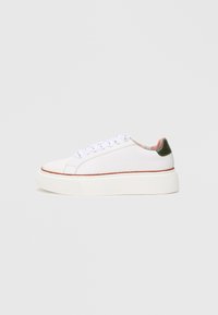 Британская компания носит имя своего хозяина Пола Смита. Он не просто умеет угадывать тенденции, ему удается создавать их. Поклонникам классики, смешанной с любовью, детской непосредственностью и озорством, обязательно захочется купить Paul Smith. Мужские туфли завлекают своей изысканностью, придадут представителю сильного пола аристократичности. Лаковые лоферы оттенка фуксии — для дамы, у которой много забот и ей всегда нужно куда-то спешить, ведь в них очень удобно. Сапоги и ботинки Пол Смит сделаны по последним ноу-хау, так что в них будет и уютно, и модно, и теплая защита в холода обеспечена. В кедах желание заниматься спортом никогда не пропадет. Качественный пошив, оригинальный дизайн, первосортный материал — пройти мимо всего этого вы не сможете, и правильным решением для вас будет желание купить обувь Paul Smith. Бренд выпускает также шикарную линию одежды и аксессуаров. Брюки, юбки, джинсы, платья и много другое ждет вас, а очки станут отличным дополнением к вашему любому образу.