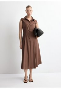 Известно, что платье как отдельный вид одежды произошло от плащей и накидок, за историю своего существования оно претерпело множество видоизменений и модификаций. Длинные и короткие туники, пышные наряды с завышенной талией и глубоким вырезом, французская роскошь от Жозефины, корсеты и кринолин — мода менялась с течением времени. Все более популярными в сезоне 2020 года становятся модели с воротником, называемые платья-блузки или платья-рубашки. Они сделаны из натуральных и синтетических тканей, например из джинса, хлопка, сатина и полиэстера. Зачастую такие модели выполнены с использованием кнопок или пуговиц от воротника до пояса или до самого края подола. Уместным дополнением станут бусы и всевозможные брошки, а также тонкий ремень на талию. В качестве обуви вы можете обуть туфли на шпильке или танкетке, удобные балетки, сандалии или симпатичные босоножки.