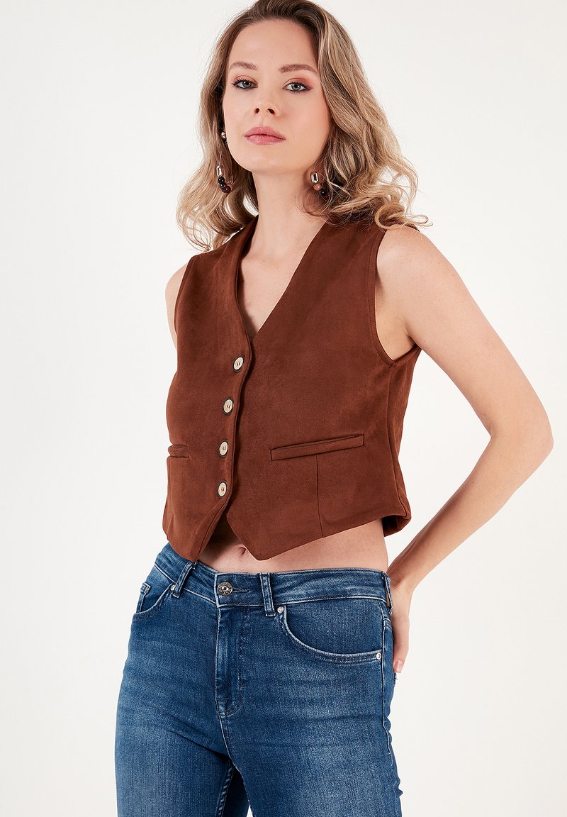 - Джинсовая жилетка
