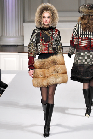 Основа коллекции осень-зима известного Оскара де ла Рента – это экстравагантность и богатство. На одном показе этого известный модельер сумел совместить разные эпохи. Он очень красиво и качественно соединил меха, жаккарды, парчу, китайский шелк и кружева.