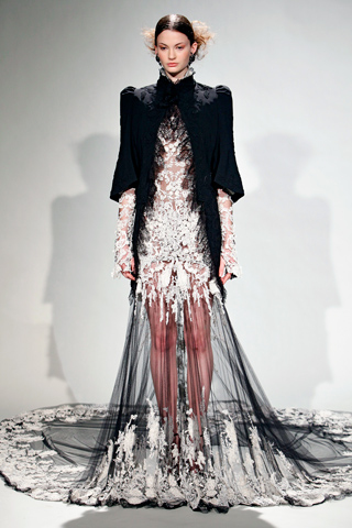 Модный показ был оформлен не в виде дефиле, а скорее в виде выставки, где модели замирали в разных позах в роскошных кружевах и многослойных шифонах, которые были созданы талантливыми дизайнерами Дженни Крэйг и Джорджиной Чепмен. Свою коллекцию модельеры создали на основе образа женщины викторианской эпохи. Они наделили ее помпезностью и пышностью. В одежде были использованы всевозможные кружева, кринолины, шлейфы, перья, стоячие воротники, вышивка жемчужными нитями, пайетки и драгоценные камни.