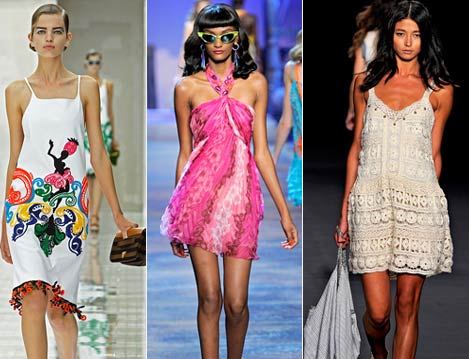 Ни один летний гардероб не может обойтись без летнего платья, а именно – сарафана. Поклонницам воздушных платьев следует отдать предпочтение марке Cristian Dior, любительницам экспрессии – Prada, уютный вязаный сарафан можно встретить у Vivienne Tam. Яркие полосы, вязаные вещи, замысловатые кружева и оборки, - выбрав подобный декор, вы не прогадаете.