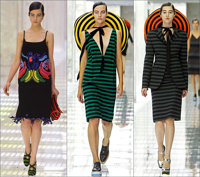 Каждый показ Миуччи Прада уникален и не похож на предыдущий. Коллекцию весны 2011 сам дизайнер назвал «барочным минимализмом». Название не случайно, в его основе лежит образ танцовщицы, популярной в 1920 – е годы, Джозефины Бэйкер.