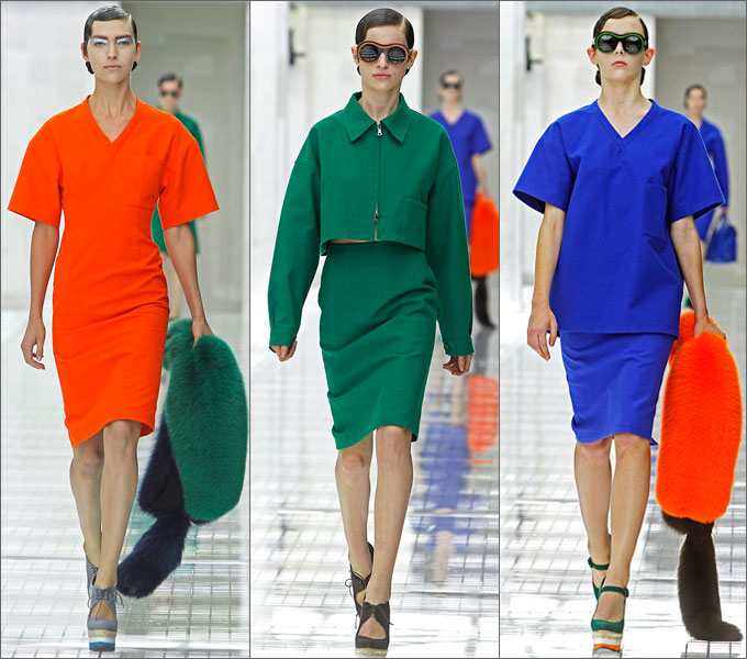 Весенняя коллекция 2011 года богата разнообразием: на моделях можно увидеть сарафаны с бретелями-спагетти, оборки на розово-оранжевых платьях, элегантное платье-блузку белого цвета украшал необычайный узор с изображением Джозефины Бейкер – экзотической танцовщицы из кабаре Фоли – Бержер.