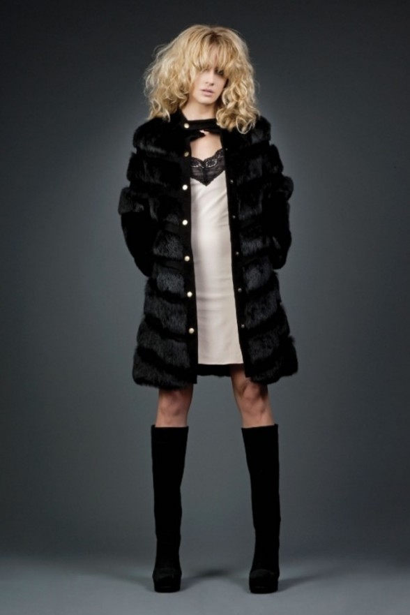 Яркими вспышками в нарядах иногда мелькают цветочные и леопардовые принты, красный, фиолетовый, голубой, но в основном, встречаются белые и черные краски. Стоит так же упомянуть меховые накидки, шубки «под леопарда» выгодно оттеняющие созданные образы.