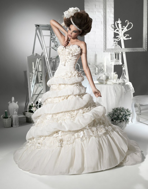 Коллекция свадебных платьев 2012 от Maria Karin поражает внимание замысловатыми фасонами, яркими, пышными и помпезными моделями. Украшения некоторых юбок по своей фактуре напоминают красивый праздничный торт. Нестандартно на общем фоне смотрится свадебное платье черного цвета.