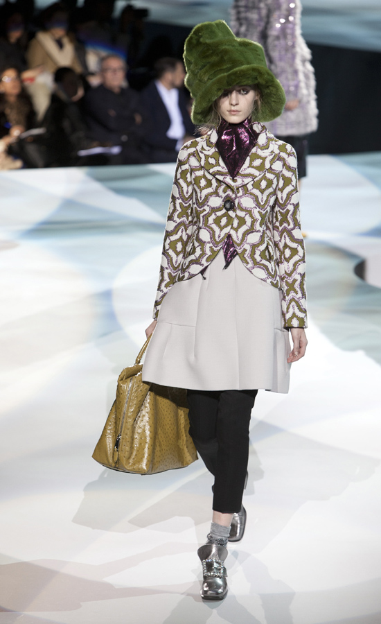 Очень часто модели демонстрировали большие размеры: платья или пальто, юбки и кофты, которые гармонировали с приталенными силуэтами. Отдельно место в линии заняли аксессуары: меховые шапки и перчатки, оригинальные сумочки. Marc Jacobs создал уникальную коллекцию, которая понравится истинным модницам!
