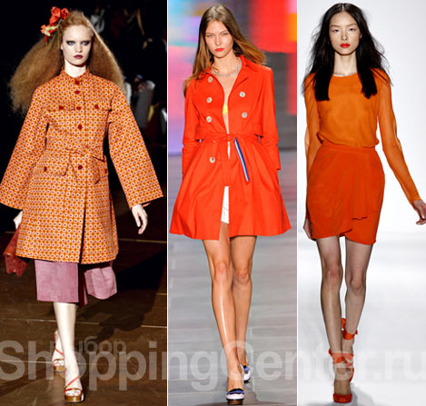 Очень модный в этом сезоне цвет апельсина в одежде. Расцветки алого, оранжевогои желтого актуальны этой весной. Так, плащ от MarkYakobs в стиле 70 – х годов можно взять на вооружение как must – have сезона. Простота кроя и несколько ключевых акцентов отличают эту модель: воротник в форме стойки, расширенный рукав и накладные карманы. Но не стоит забывать о важном правиле: яркие материалы исключают потребность в аксессуарах, поскольку сами таковыми являются.