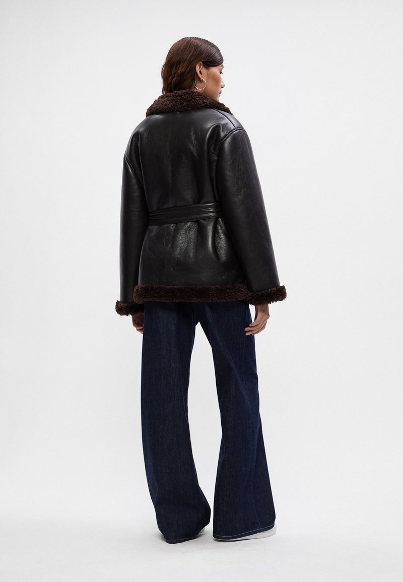 - Пальто из искусственной кожи
