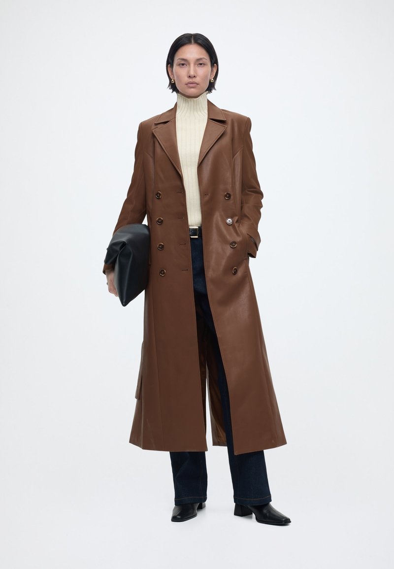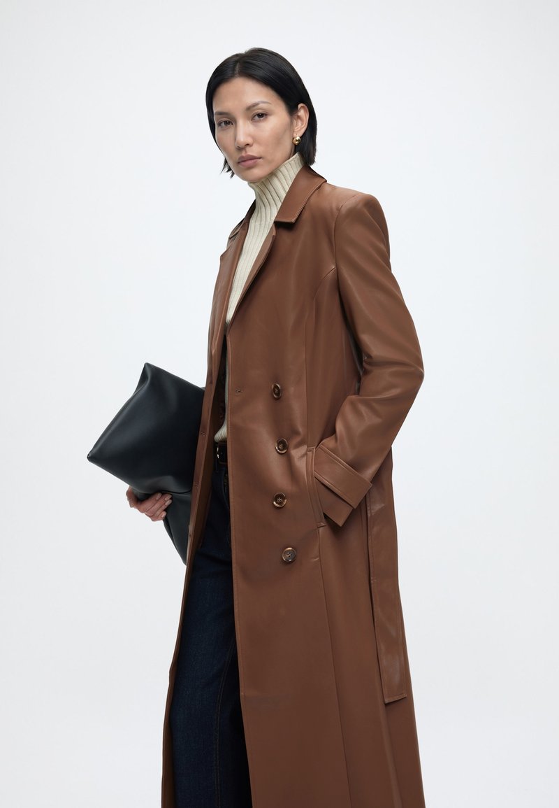 - Пальто из искусственной кожи