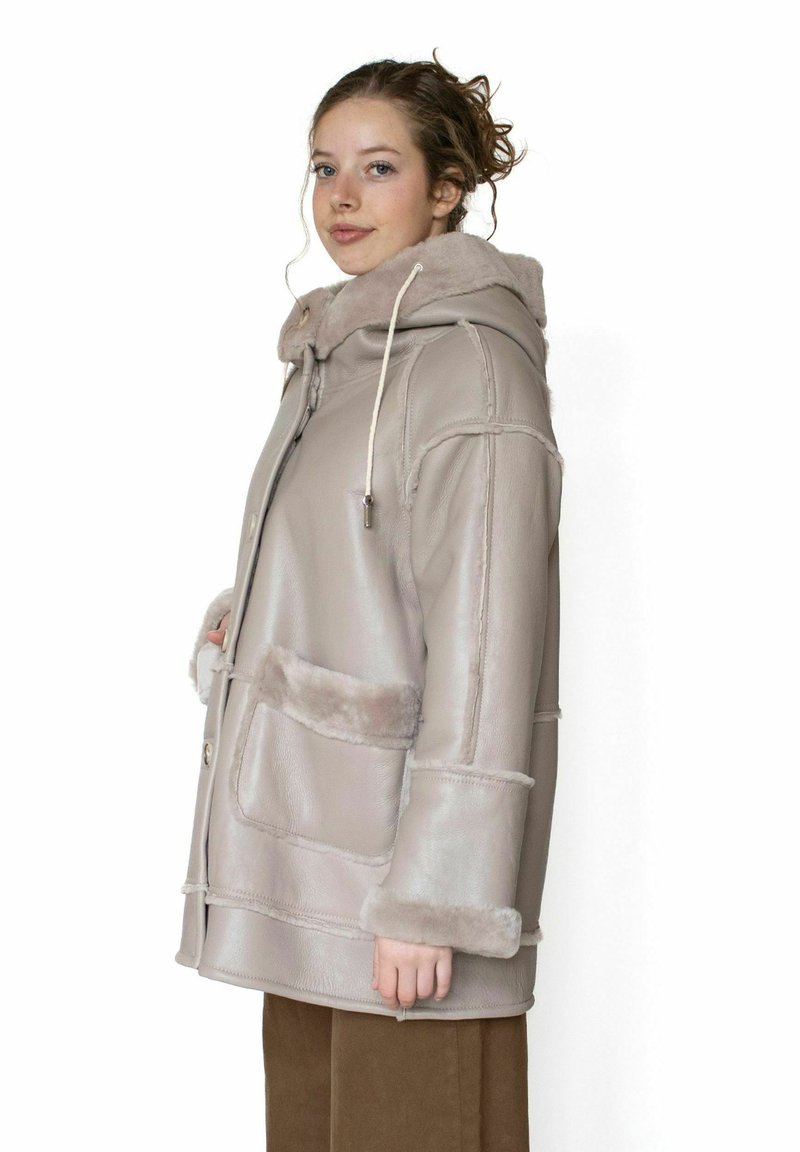 - Пальто из искусственной кожи