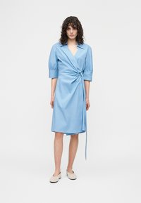 Известно, что платье как отдельный вид одежды произошло от плащей и накидок, за историю своего существования оно претерпело множество видоизменений и модификаций. Длинные и короткие туники, пышные наряды с завышенной талией и глубоким вырезом, французская роскошь от Жозефины, корсеты и кринолин — мода менялась с течением времени. Все более популярными в сезоне 2020 года становятся модели с воротником, называемые платья-блузки или платья-рубашки. Они сделаны из натуральных и синтетических тканей, например из джинса, хлопка, сатина и полиэстера. Зачастую такие модели выполнены с использованием кнопок или пуговиц от воротника до пояса или до самого края подола. Уместным дополнением станут бусы и всевозможные брошки, а также тонкий ремень на талию. В качестве обуви вы можете обуть туфли на шпильке или танкетке, удобные балетки, сандалии или симпатичные босоножки.
