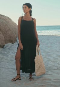 Выход на пляж подразумевает не только красивый купальник - в самом деле, не станете же вы выходить в открытом бикини прямо из номера отеля и дефилировать в таком виде мимо чинных пожилых парочек в лобби! Нет-нет, чтобы действительно красиво выйти на пляж, женщинам нужна также подходящая одежда - длинная майка, красивое платье, свободная туника, парео или на худой конец топик и шортики. И хотя всем понятно, что функция пляжной одежды - прикрыть вас ровно на те две минуты, которые занимает проход от комнаты до моря, без нее все будет как-то искусственно. Можно, конечно, воспользоваться своим привычным гардеробом, но будьте готовы к тому, что соленый горячий песок его безвозвратно испортит.