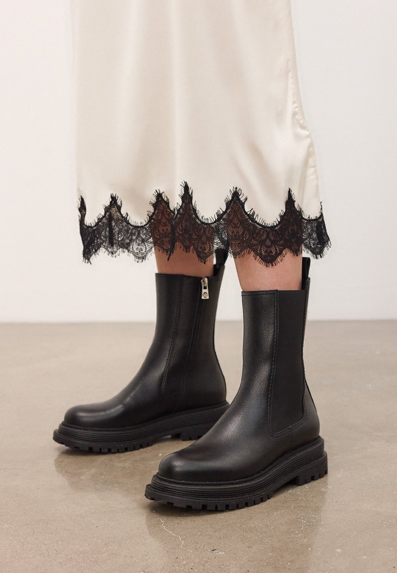 - Полусапожки на высоком каблуке
