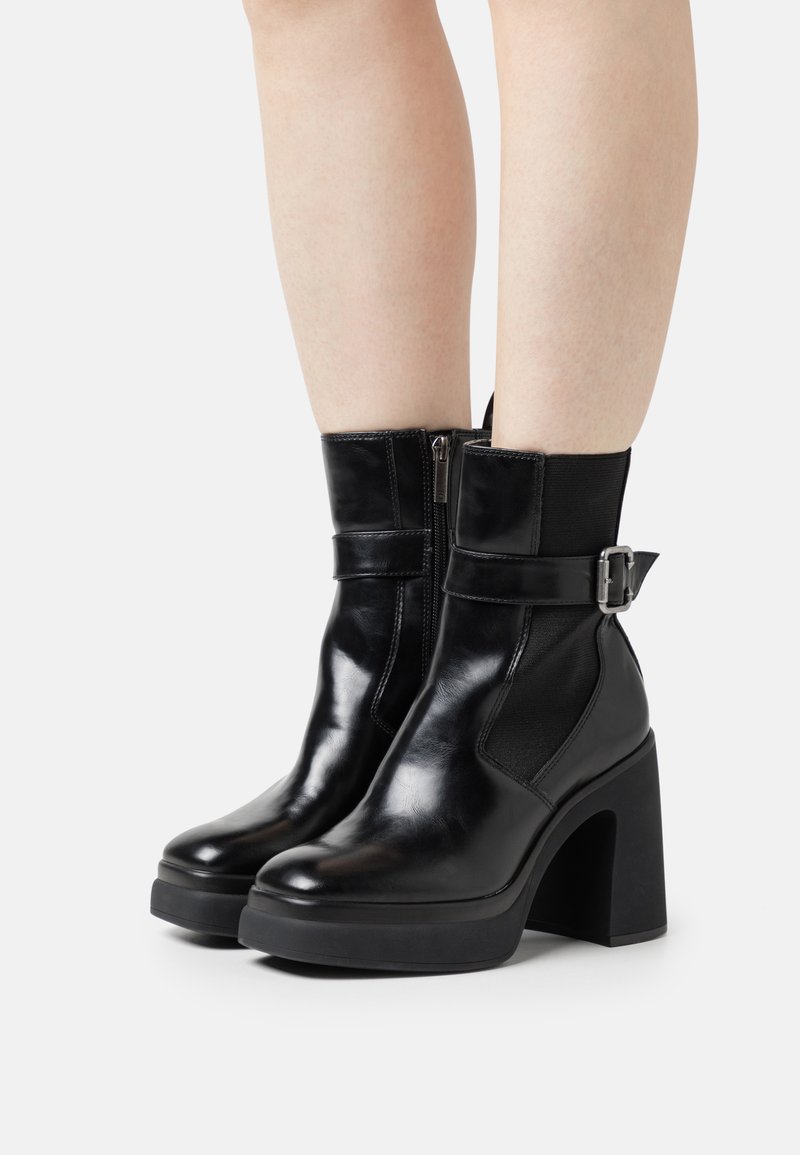 - Полусапожки на высоком каблуке