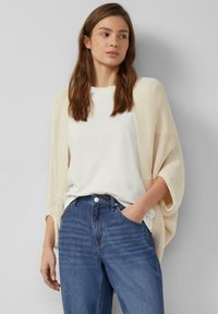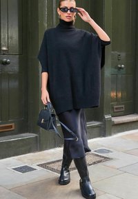 Начнем с фасона: сегодня в моде простота — ровные края без кружевной отделки будут хитом сезона. Минимализм мы наблюдаем и в случае с воротником: здесь у нас либо неглубокий вырез, либо модель под горло. Переходим к длине: в этом случае выбор будет легким, ведь популярными будут как самые короткие варианты, так и женские накидки-пончо больших размеров, доходящие до середины бедра. В широте тренда можно убедиться, обратив внимание на решения Sheego — в коллекции этого бренда есть любые модели, которые только могут заинтересовать представительниц прекрасного пола. С цветом определиться вообще не проблема: популярными будут как скромные казуальные серые и черные оттенки, так и более яркие и насыщенные бордовые, сосновые, темно-зеленые варианты. Ценителям яркого образа можно остановиться на леопардовых, клетчатых или полосатых моделях.