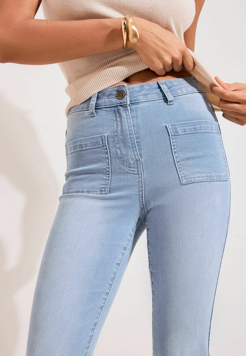 - Клешеные джинсы