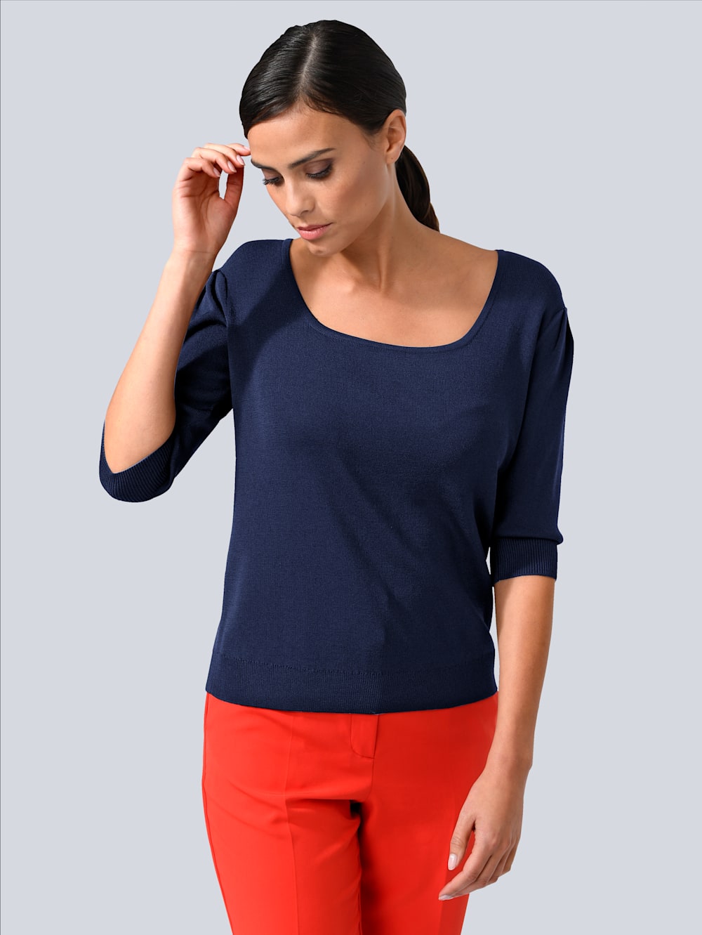 - Пуловер с круглым вырезом