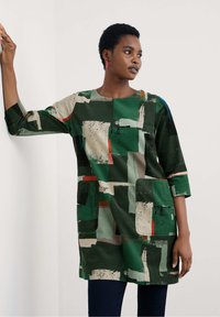 Туника - один из наиболее древних предметов как женской, так и, между прочим, мужской одежды. Они появились еще в Древнем Риме, и выглядели просто как мешки с дырками для головы и рук. Мужчины носили мешки-безрукавки, а девушки сначала надевали на голое тело тунику с длинным рукавом, а затем еще одну в виде мешка, поверх первой. Сегодня же, в 2020 году, туники стали неразлучными спутниками женщин в теплое время года, на отпуске, на даче и даже в офисах. И хотя туники благодаря свободному покрою являются, возможно, наиболее очевидным выбором одежды для крупных полных дам, хорошую модель большого размера доселе найти было не так-то просто!