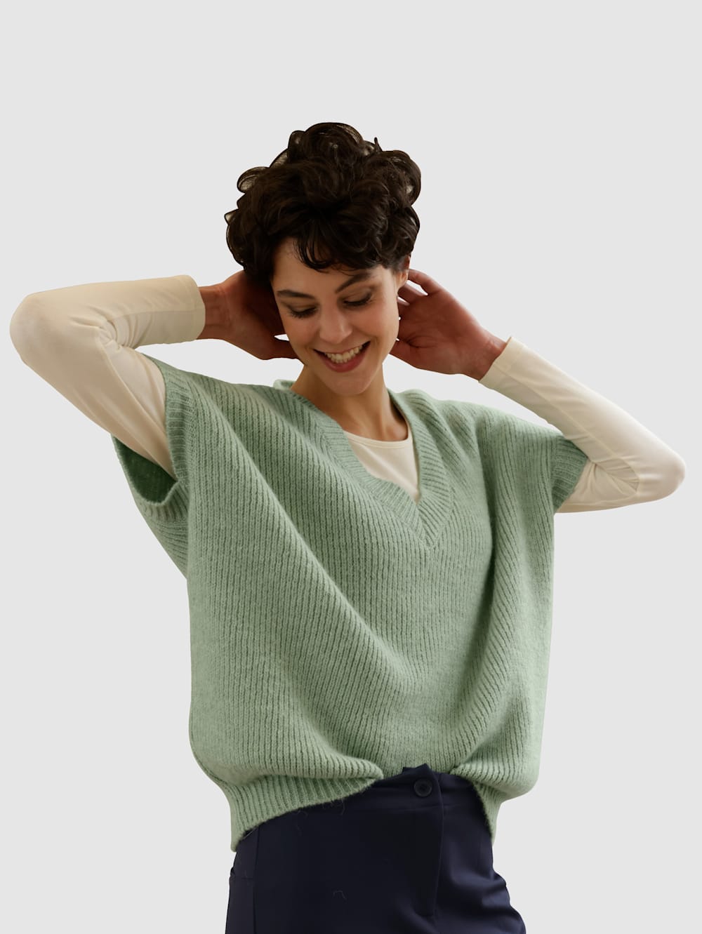 Нина | 03.08.2021 в 13:43 | | Заказ № 196309 от 01/06/2021 Жилетка стильная, крупная вязка, оверсайз, цвет фантастический. Подойдет к разным стилям и возрастам. При росте 164 прикрывает бедра, размеру соответствует, если не любите свободно, можно брать на размер меньше. |